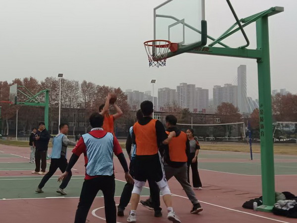 下午三时,随着裁判员一声哨响,比赛正式拉开帷幕。赛场上,身着蓝色队服的南湖派出所民警们,凭借严谨的战术执行、默契的团队协作和顽强的拼搏精神,充分展现了公安队伍纪律严明、作风硬朗的良好风貌;而身着黄色队服的我校教职工队员们,则以灵活的跑动、精准的投射和不言放弃的体育精神,彰显出教育工作者的蓬勃朝气与昂扬活力。