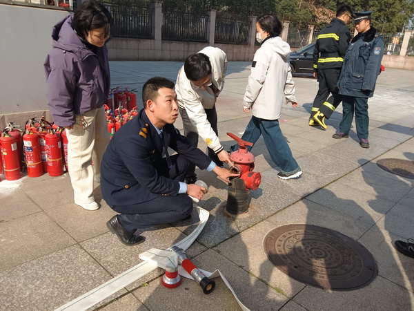 在“消防水带连接与使用”教学区,参训人员两人一组,协作完成水带铺设、接口连接、水枪握持射水等科目,进一步掌握消火栓系统的操作要领,为应对较大火情打下基础。