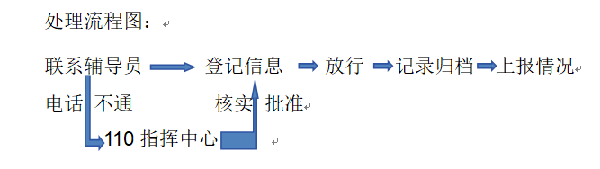 2.若学生未提前办理请假手续,宿舍管理员先联系相应辅导员核实情况,经辅导员批准,登记信息后放行;若无法与辅导员取得联系,宿舍管理员须报110指挥中心进行处理,得到110指挥中心批准,登记信息后放行,并于次日提交情况报告。